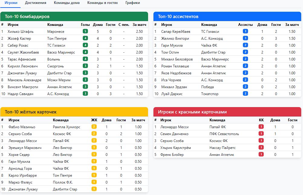 А для души (для себя любимых) в спаренных турах на экваторе (5-6 туры) очень успешно погоняли "оленей" (Мелита). Дважды уверенно по 3:0 (и на выезде, и дома потом). Жозеф Кастер записал на свой счёт 5 из 6 голов. И почти догнал в гонке бомбардиров самого Лукаку) 25 у Джонатана, и 24 теперь в активе Кастера. Правда и ложка дёгтя имеется в его бочонке с мёдом. Слишком часто празднует голы, снимая футболку. И не всем судьям такое по душе. И входит поэтому Жозеф и в анти топ-10, у которых по 4 жк имеется в активе.