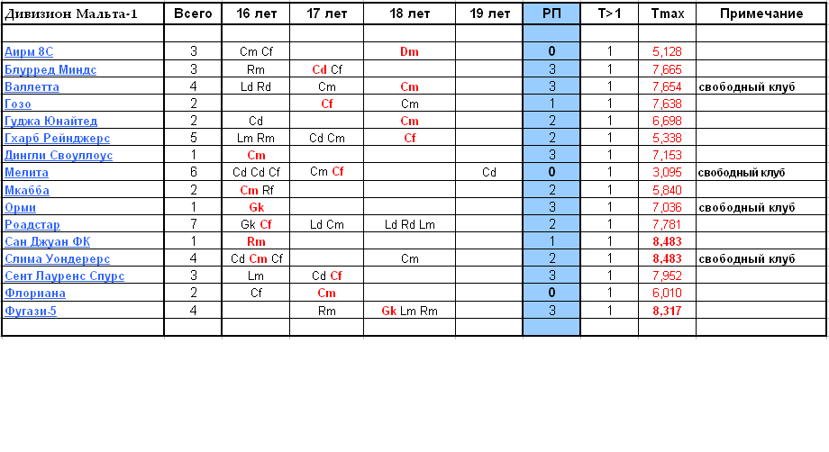 Всего, во всех ДЮСШ дивизиона 73 игрока, из них 8 игроков 19 лет. Общее число игроков, по сравнению с прошлым сезоном, увеличилось на 4 игрока.