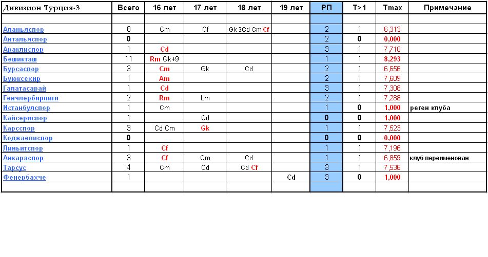 Отчёт №2. ДЮСШ дивизиона Турция-3 на 25.07Нажмите для просмотра прикрепленного файлаВ дивизионе нет свободных клубов. Клуб Пурсакларспор переименован в