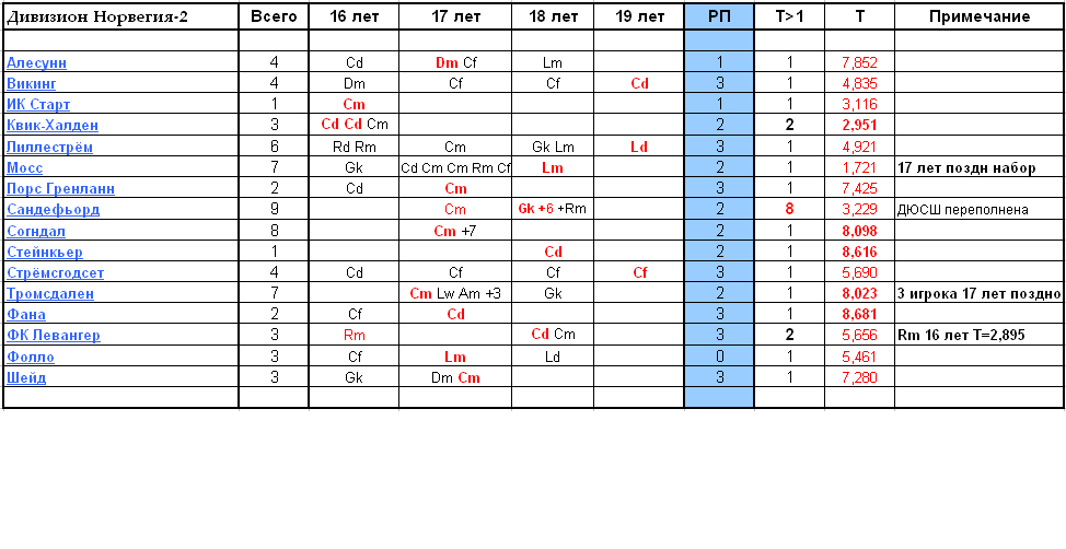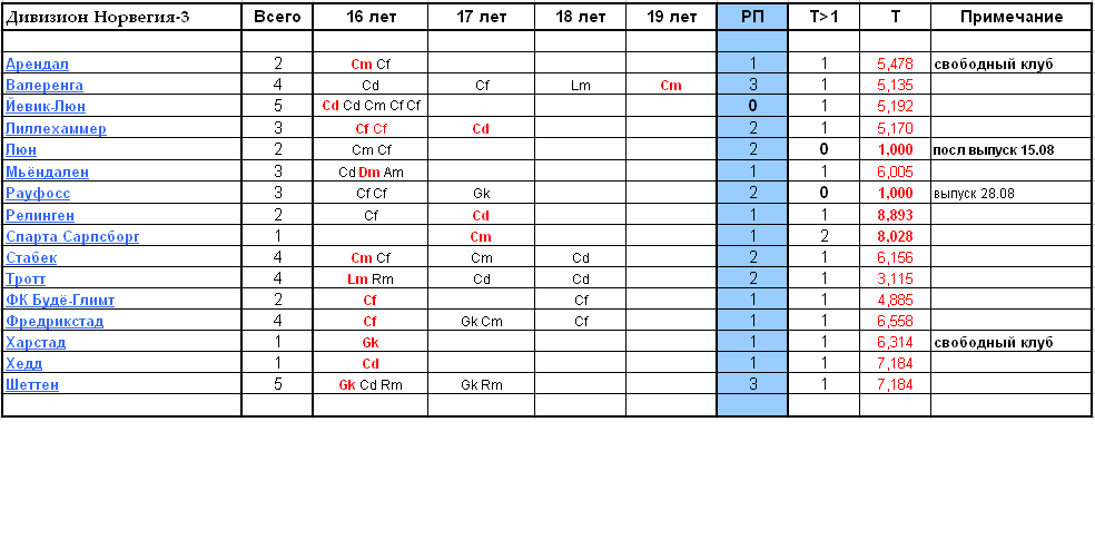 Отчёт №2 о состоянии ДЮСШ дивизиона Норвегия-2, последняя тренировка 17.06Нажмите для просмотра прикрепленного файлаВ дивизионе нет свободных клубов.