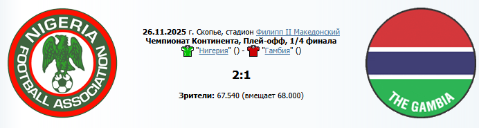 Нигерия попала на Гамбии. Гамбия с силой где-то 2004. Нигерия 2012. Ровно. Очень ровно.