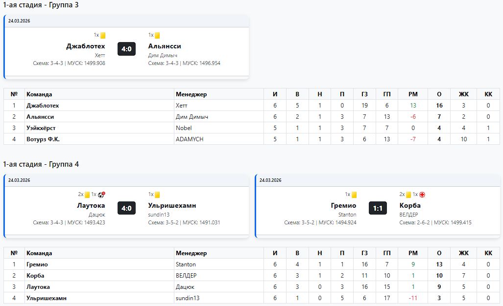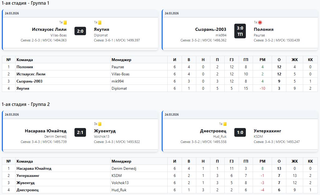 Дим Димыч исправился)И его Альянсси смогли взять реванш в домашнем матче. Тяжелейшая волевая победа с победным голом на 89-й минуте. Но в борьбу Дим Димыч и Ко вернулись. И в этой группе ещё далеко ничего не ясно. Все в игре, кроме убежавшего в отрыв Хетта. И все сохраняют шансы. Как на выход в плей-офф, как на приглашение в следующих Мастерах, так и на вылет из турнира и пролёт на следующий сезон.