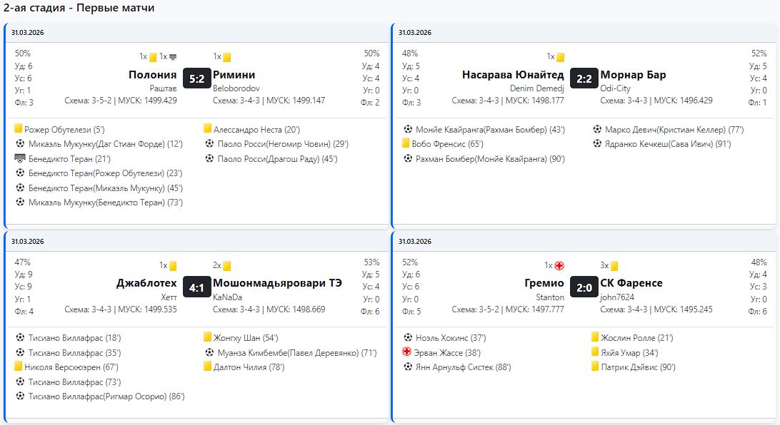 Коммерческий турнир. Кубок Мастеров - XXIX, 2-я стадия. ОТВЕТНЫЕ МАТЧИ..
