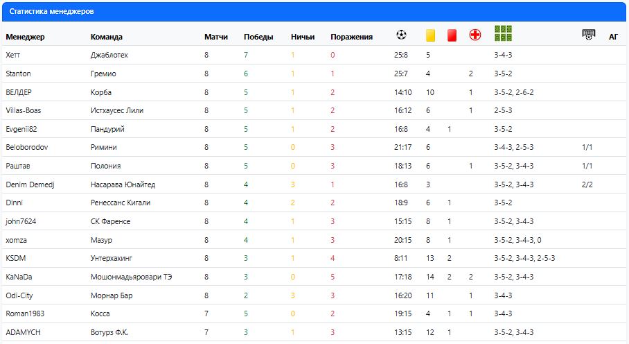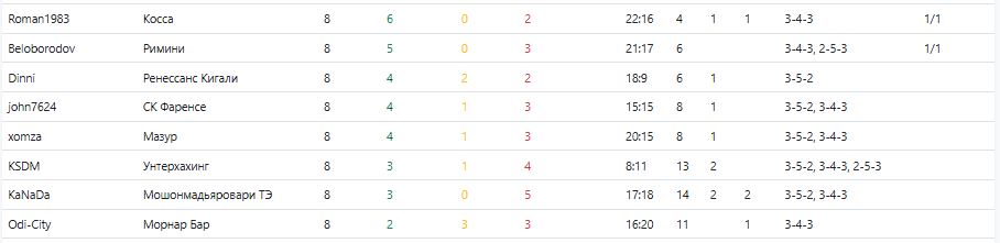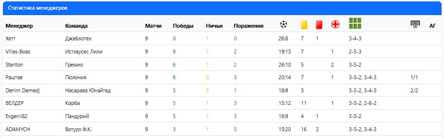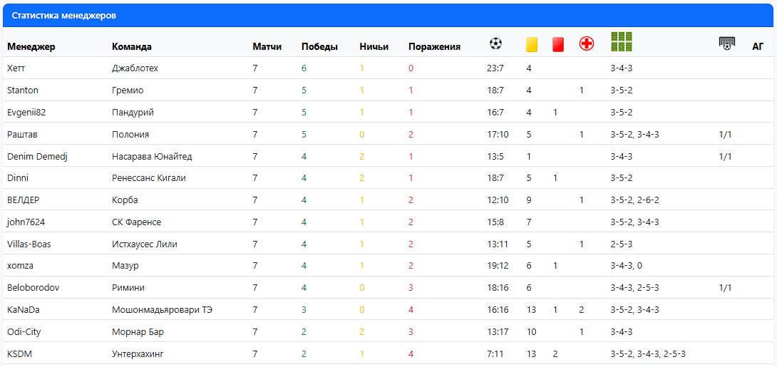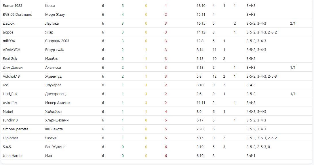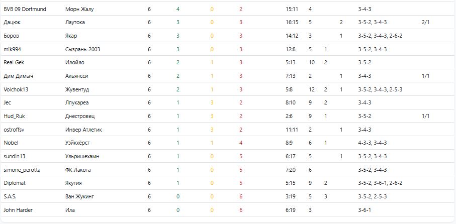 ВЕЛДЕР, двигается по другой схеме. Хотя нет. Заглянул в его владения и забрал свои слова обратно! Короче, владельцы хреновой тучи команд, тактически грамотные, креативные, сошлись на одной тропинке... И та тропка, оказалась для Серёги победной. Не знаю, кто там ему попадётся, однако, кроме Хетта, будет нормальный вариант. По крайней мере, не убийственный. Димон, успехов, Фарта и напомню, что сезон прошёл только треть пути! Работай!